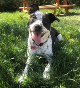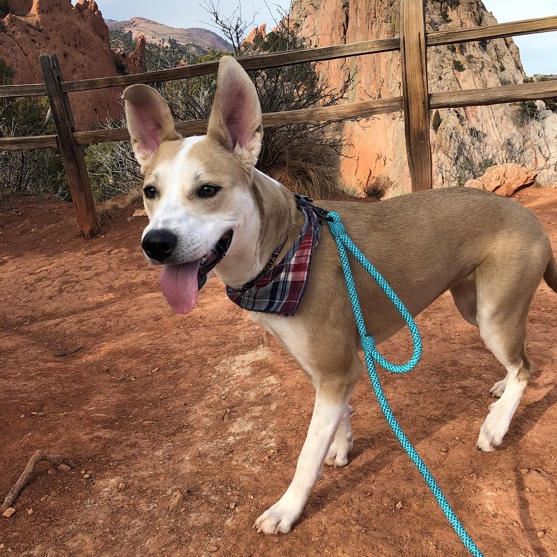 Frida wasn’t listed for adoption until she was about five months old as she had parvo and they weren’t sure she was going to make it. When Frida recovered, my coworker, who was friends with Frida’s foster mom, showed me her profile and I instantly fell in love with this big-eared beauty. I drove a little outside of Pueblo to meet her the first time and she crawled in my lap and the rest is history. She is the best co-pilot and hiking buddy and goes everywhere with me, including the YellowDog office. She is the sweetest and fastest pup there ever was.