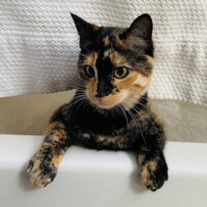 Curious, Fast, Eater of Anything. Kale? She’ll eat it. Cereal? Of course! Moths? Fun to catch AND eat! This little girl was adopted from Animal Rescue of the Rockies in Dec. 2020. She’s brought a lot of happiness to our family, and gives our older cat Yoshi someone to take care of.