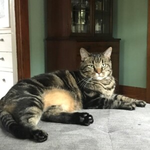 A few weeks later, due to some mental health issues, he decided that he could not have a cat anymore and told me that if I “didn’t come get this cat that he would put her out on the street!” So I picked her up and took her home and we haven’t looked back since!