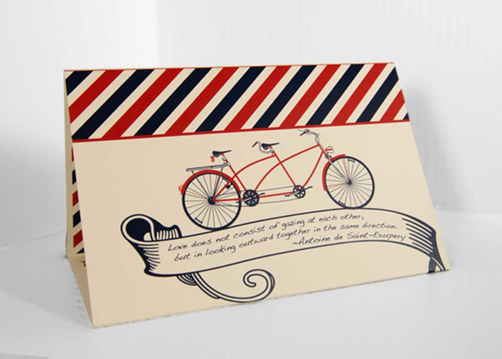 We offer notecards in several sizes, from petite to “Whoa, that’s a big card!” The most popular sizes are 4.25″ x 5.5″ and 5″ x 7″. If you’ve got something more unique in mind, let us know. We love a good challenge—and so does our printer!
